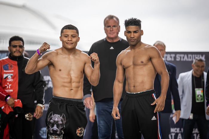 セミではWBAライト級レギュラー王者ジェルボンテ・デービス(米)に挑戦して善戦したライト級ランカー、イサック・クルス(メキシコ=WBC3位)が古豪ユルオルキス・ガンボア(キューバ)と10回戦。クルスは134ポンド3/4(61.12キロ)、ガンボアは134ポンド1/4(60.89キロ)を計測した。