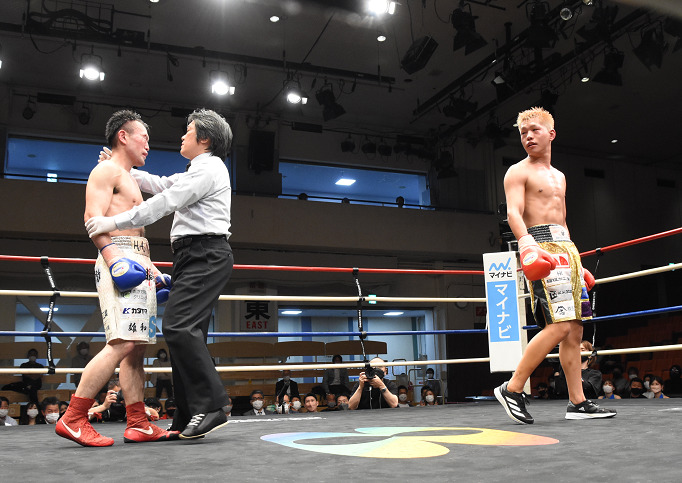 森は5、6回、再び伊佐を押し込んでボディ打ちで迫った。伊佐は足が止まりかけるが、6回は打ち返して反撃。しかし森はその後も前に出て王者をつぶすボクシングに徹し、多少の被弾はあるもののパワーで押し切ってしまおうというボクシング。最終回は両者ともに力を出し切ってフィニッシュした。森は10勝2KO1敗。伊佐は9勝1KO4敗1分。