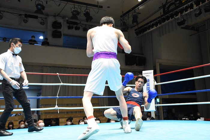 川上海音(駒大)13秒の勝利。左ストレートで吉田黎斗をダウン