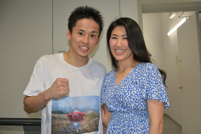 奈良県出身の中嶋は前OPBFバンタム級王者で日本S・バンタム級5位の2歳上の兄一輝(大橋)に続いて芦屋大からプロ入り。ランキング入りしてベルトを目指す。兄は独身だが、今年2月に8歳上のビーナスヒップトレーナーの瑛子さんと結婚しており、「減量がうまくいったのは妻の食事管理のおかげで感謝しています」。応援に来た妻と抱き合って勝利を喜んだ。