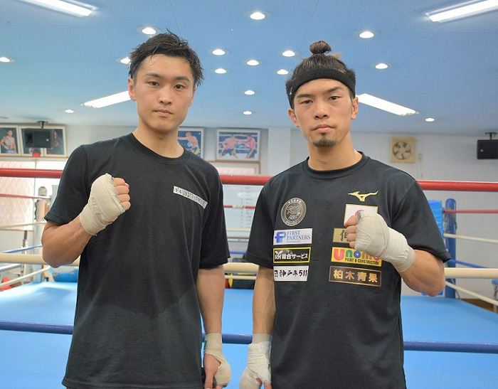 スパーを終えた田中(右)と西田