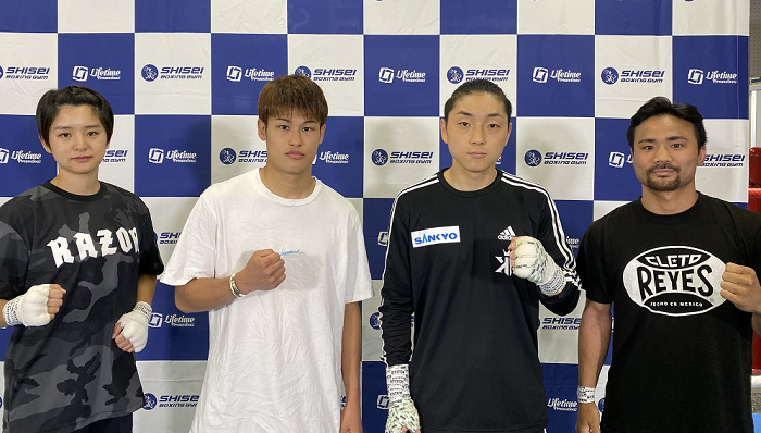 13日大田区総合体育館で開催されるWBO・S・フライ級タイトルマッチのアンダーカードに出場する志成ジムの比嘉大吾、森武蔵、堤駿斗、伊藤沙月の4選手が5日、オンラインで記者会見と公開練習を行った。