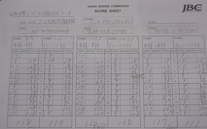 井岡は11、12回も優勢。自在に攻める井岡に対し、ニエテスは出血とダメージで井岡の攻撃をかわすのが精一杯。右を決めて最後の意地を見せたが、チャンピオンが余裕を持って戦い抜き、終了のゴングの瞬間、右グローブを突き上げた。33歳の井岡は29勝15KO2敗。40歳のニエテスは43勝23KO2敗6分。