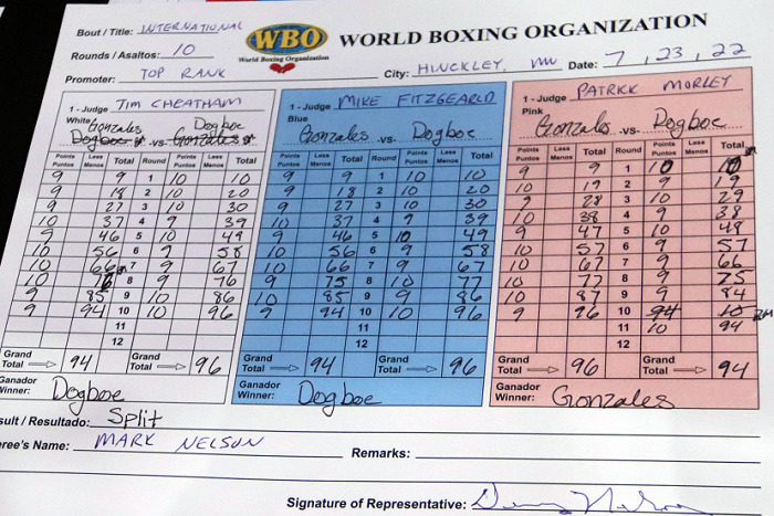 以後、パンチの威力に勝るゴンサレスが前進して押し気味に進める。スコアを拮抗させたゴンサレスに8回、奮起したドクボエが迎撃で挽回。9回、ゴンサレスの上下へのコンビネーションがヒット。最終回もゴンサレスが優勢に見えたが、公式スコアは96-94が2者に94-96の2-1でドクボエが接戦をモノにした。