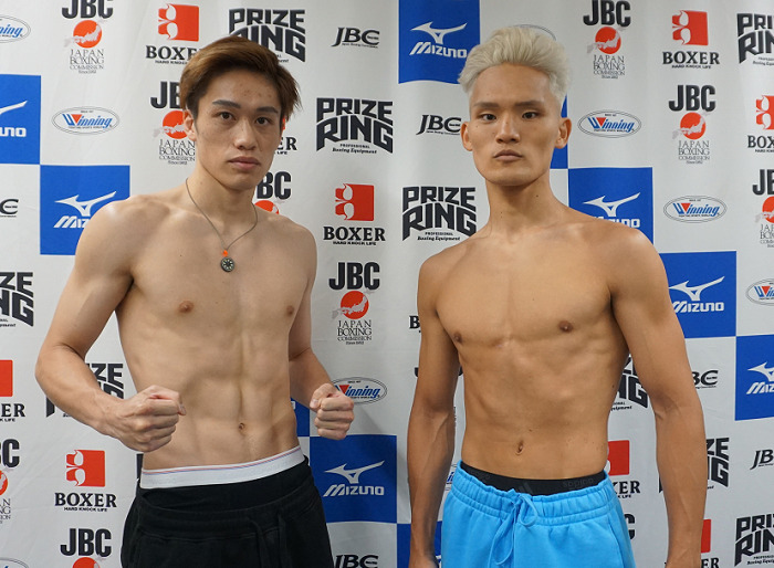 あす9日、後楽園ホールで開催される「ダイヤモンドグローブ」の計量が8日、日本ボクシングコミッションで行われた。メインの日本S・フライ級タイトルマッチは、初防衛戦を迎える王者の中川健太(三迫)が52.0キロ、挑戦者1位の梶颯(帝拳)がリミットの52.1キロで合格した。