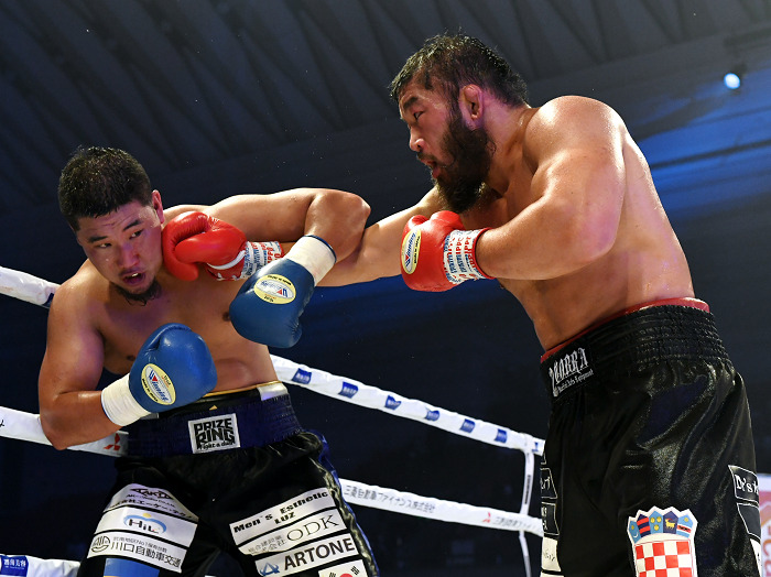 この日は1勝1KO勝ちの高山秀峰(スパイダー根本)と対戦。サウスポー・スタイルから初回に鋭い左フックを決めて好スタートを切ったが、逆に高山の右フックを受けて効かされ、その後は決定打もないまま揉み合いのような場面が続いた。