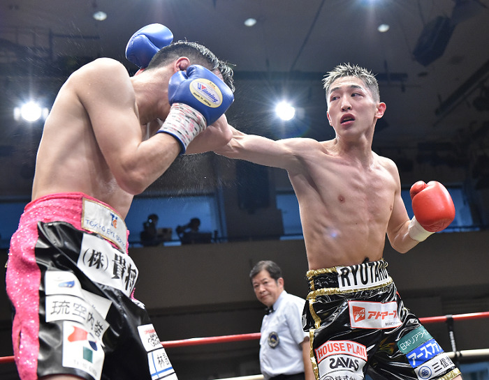 高校6冠の中垣が近大出資のの吉田とアマチュア出身対決。吉田が頭を振ってプレスをかけて右ストレートをボディに打ち込み、スピードのあるサウスポー中垣がカウンターを狙った。2回、吉田の右が中垣をとらえるが、3回は中垣の左ストレートを上下にヒットさせた。