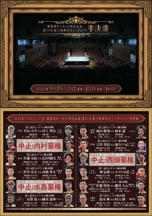 この企画は先の東日本協会月例理事会にて決定した。高校時代にインターハイを制した山本諒真(DANGAN AOKI)や国体で優勝した松野晃汰(神奈川渥美)、輪島功一さんの孫でデビュー3連続KO中の磯谷大心(輪島功一S)、プロ11戦・アマ20戦の佐藤賢治(REBOOT.IBA)が残ったウェルター級をはじめ、熱戦が大いに期待される今大会を盛り上げようというものだ。