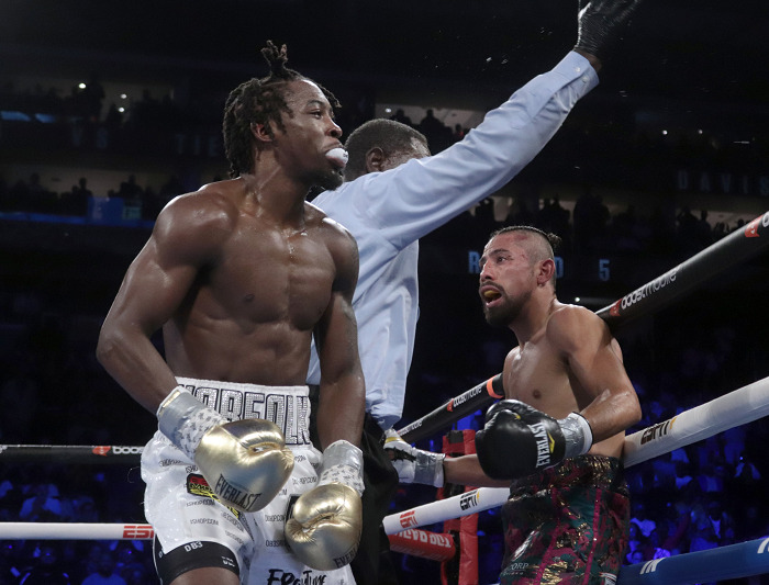 セミでは東京五輪ライト級銀メダリストのキーショーン・デービス(米)がオマール・ティエンダ(メキシコ)に5回1分38秒TKO勝ち。デイビスは6勝5KO無敗。Photos by SUMIO YAMADA