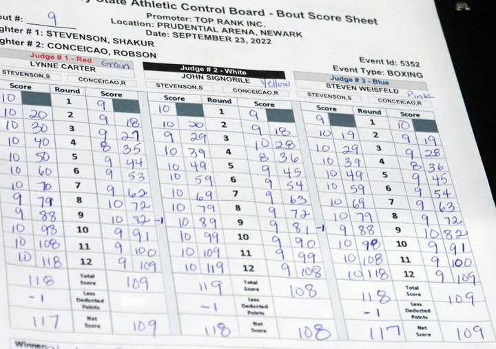 23日(日本時間24日)米ニュージャージー州ニューアークのプルデンシャル・センターでゴングが鳴ったWBO&WBC・S・フェザー級統一戦は、前日の計量で失格し前王者となったシャクール・スティーブンソン(米)が挑戦者でWBO、WBCともに2位のロブソン・コンセイサン(ブラジル)に3-0判定勝ち。2つの王座は空位のままとなった。
