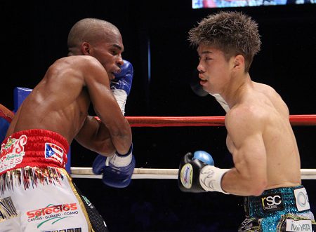 WBC同王座を8度防衛し、矢吹正道(緑)に敗れたものの今年3月に再び対戦。新たにインファイトを駆使して矢吹を圧倒したことで、「ボクシングの幅が広がった。指示があればすぐ(インファイトもアウトボクシング)両方できる」というのが自信の源だ。