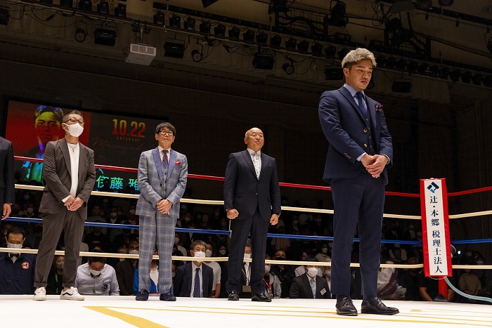 メインの前には元WBO世界S・フェザー級王者、伊藤雅雪の引退式が行われた。伊藤は「13年間、応援してくれた方がいたからやってこられた。自分を強くするための責任が生まれ、人として成長できたと思う。13年間支えてくださってありがとうございました。いつも支えてくれた家族にも感謝を言いたいです」とあいさつ。惜別の10ゴングが打ち鳴らされた。