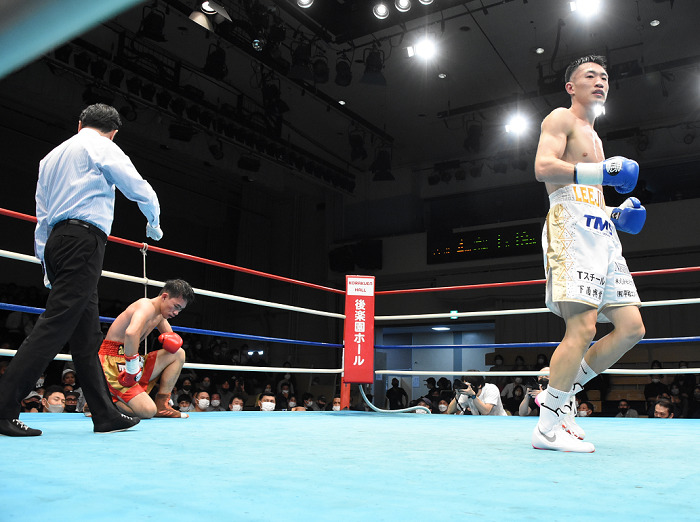 日本S・フェザー級18位の李が2月に全日本同級新人王を獲得して以来の試合。スタートからKO賞を狙って右ストレート、左ボディを盛んに打ち込んでいった。3回、ダメージを与えて右ボディアッパーでダウンを奪い、4回には右アッパーを顔面に決めて2つ目を奪った。李はKO勝ちを狙って攻め続けたが、トンテップはクリンチも使って以降はダウンを拒否した。李は9勝4KO。トンテップは9勝5KO9敗2分。