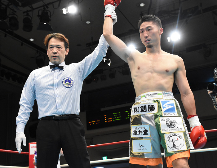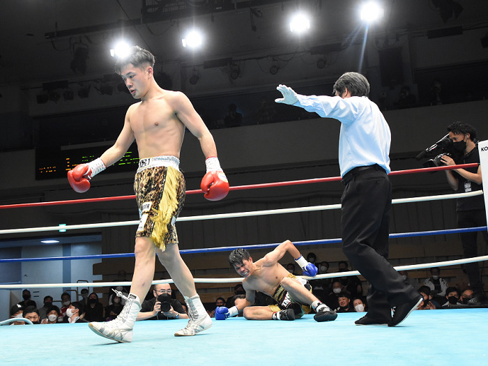 日本ウェルター級13位の平安山と2年ぶり復帰戦の星がスタートから主導権争いを演じた。2回、平安山は距離を詰めて右フックを決めるが、上背で勝る星が3回からジャブを機能させて優位に立つ。その後も星がジャブから右につなぎ、食い下がる平安山を振り切った。星は5勝3KO2敗2分。平安山は6勝4KO2敗。