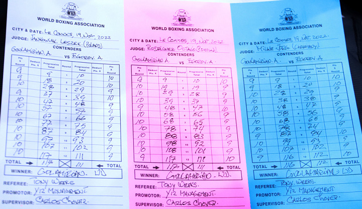 勝敗の分岐点は7回。右フックを口火に仕掛けたグラムイリアンは8回、左アッパーをねじ込んでチャージ。アルメニア人ファンを沸かせた王者は攻勢をキープ。食い下がるエゴロフに断続的に右、左ボディーを浴びせて突き放しをかける。終盤クリンチが多発する中、ロシア人は食い下がったが、スコアカードは116-112が2者に117-111でグラムイリアンの手が上がった。