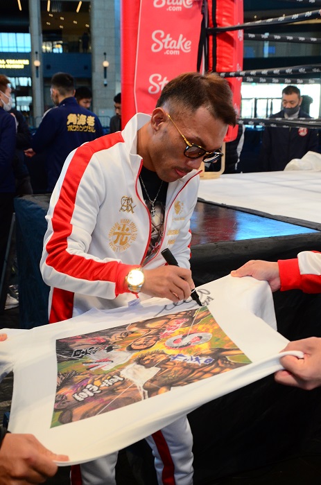 これまでL・フライ、フライ、そしてバンタム級でベルトを巻いたカシメロ(31勝21KO4敗)はギジェルモ・リゴンドウ(キューバ)に判定勝ちして以来16ヵ月ぶりの試合。トラブルメーカーのイメージが定着してしまっているが、この日もフレンドリーに赤穂に握手を求めるなど自然体で、久々のリングに機嫌がよさそう。