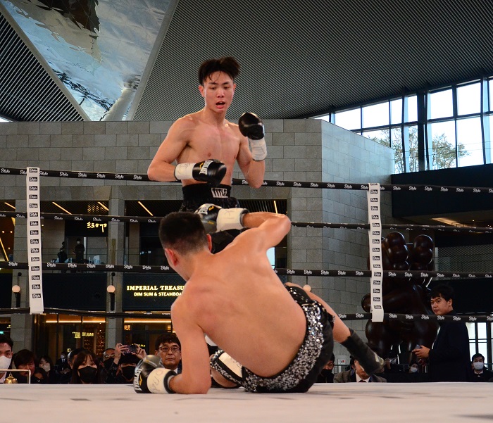 その後も時折キムの左カウンターでバランスを崩しながらも岡田はプレスをかけ続けた。5回は右ストレートを連発して挽回したが、この回に左マブタをヒッティングでカット。迎えた7回、キムの猛攻にロープを背負う岡田に対し、福地主審がストップをかけた。岡田は20勝13KO3敗。キムは9勝5KO5敗。