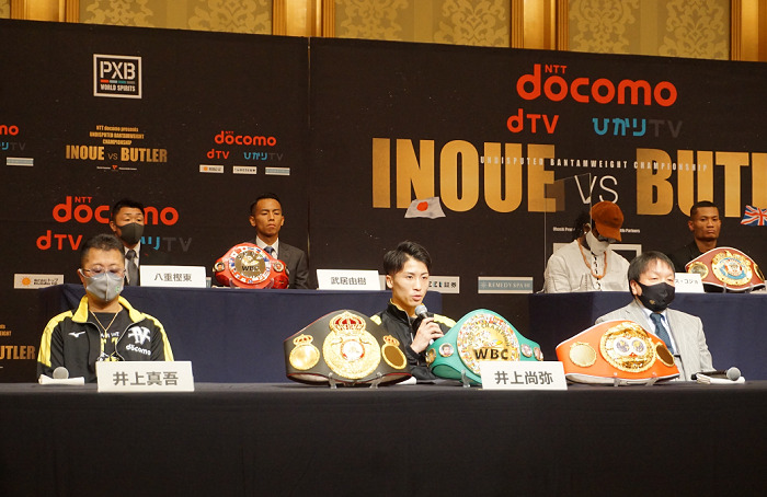どんな試合を見せたいかと問われた井上は「バトラーは前回対戦したドネアとスタイルが違って12ラウンドフルに使って戦ってくる選手。KO決着だろうが判定決着であろうが、ボクシングの素晴らしさを伝えたい。すべてリングに上がってから直感力とひらめきで戦いたい」と答えた。