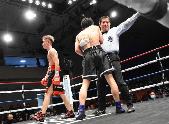 4回、左フックを打ち込もうとしたドミンゴに、富岡が左ストレートを決めてダウンを奪う。ここから富岡は攻めたもののマウスピースが外れ、入れ直して再開後、今度はドミンゴの右フックがきれいに決まって富岡がダウン。立ち上がってフラついたところでストップとなった。ドミンゴは10月、日本フライ級ランカーの飯村樹輝弥(角海老宝石)にTKO勝ちしたのに続く日本での勝利。18勝10KO2敗。悔しい逆転負けの富岡は6勝5KO3敗。