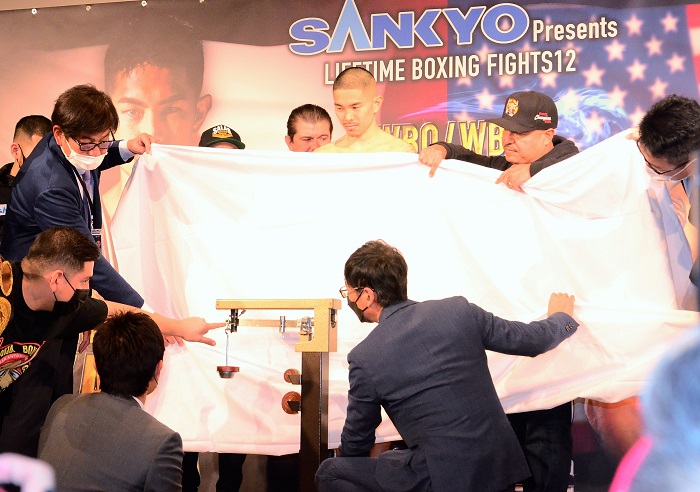井岡は最初の計量で52.3キロを計測し、全裸になってパス。井岡本人によると「ギリギリ(リミット)を狙いすぎました」とのことで、「自宅のデジタル体重計で残り100グラム。計量会場に向かう間に落ちるかと思いました」と釈明した。