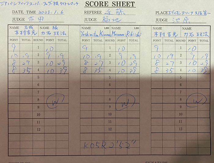 力石は「我ながらブラボーです。木村選手が日本の同じ階級で一歩先を走っていたので、アジアの頂上だと思います。何発が効いちゃったけど冷静にやれた」と話し、世界タイトルマッチ挑戦を熱望した。力石は13勝8KO1敗。木村は14勝9KO3敗1分。