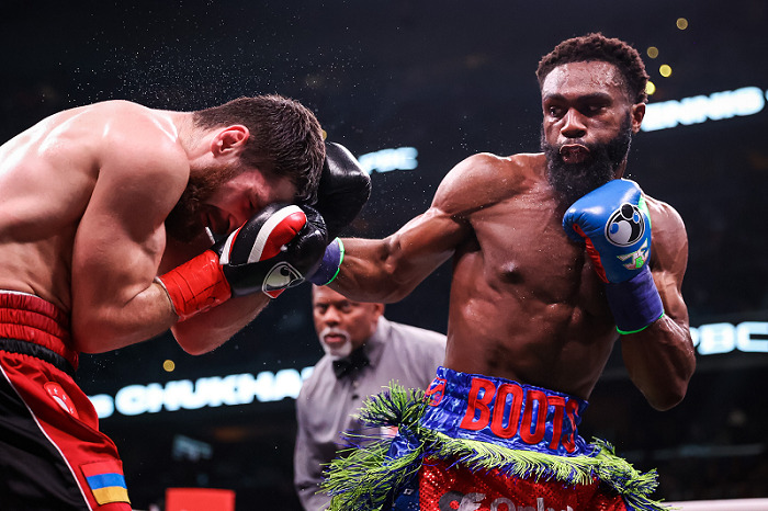 セミのIBFウェルター級暫定王座決定戦は、王者候補の同級1位ジャロン・エニスが4位カレン・チュカジャン(ウクライナ)に3ジャッジ一致の120-108の完封勝利。戴冠したもののフルラウンドの戦いを強いられたエニスは30勝27KO無敗1無効試合。ディフェンスモードのチュカジャン(21勝11KO2敗)に対し、期待外れの内容に終わった。