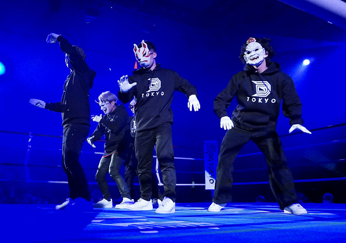 この日はリング上で新商品のファッションショーが行われたほか、スペシャルゲストとしてメンバー全員がお面を着用する“ダンステロリスト集団”O-MENZのライブパフォーマンスも披露された。同グルーブはTilTokでのフォロワー数が100万人を超える超人気仮面ダンスグループだ。