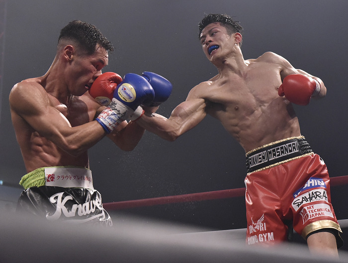 ジャブはアリカバに届かない場面もあるが、ステップして体を運びつつキレのある左フック、右アッパー。試合のイニシアティブを手放さず、迎えた4ラウンド、コーナーに追い詰めて左ボディーを効かせた。すかさず右ストレート。たまらずエスケープしたアリカバを追い、打ち下ろすような左フックでダウンを奪った。