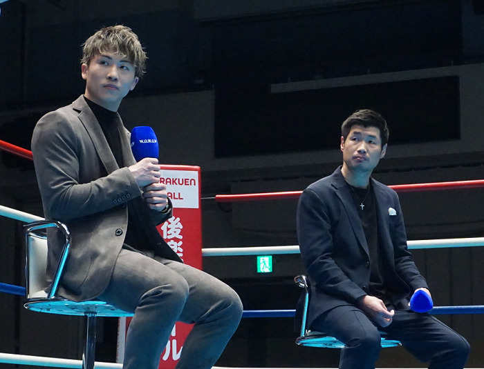 「エキサイトマッチファン感謝祭2023」が24日、後楽園ホールで開催された。レギュラー出演者に加え、スペシャルゲストとして前バンタム級3団体統一王者の井上尚弥(大橋)、元3階級制覇王者の長谷川穂積さんが参加した。