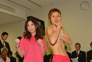 日本人対決となったWBAミニマム級戦は、王者多田悦子(フュチュール)が「ボクシングはアート。見る人にそう思ってもらえる試合をしたい」と言うと世界初挑戦の黒木優子(YuKO)は「みっちり練習してきた。ベルトさ福岡に持ち帰る」と語った。多田は47.5キロ。黒木は47.3キロ。