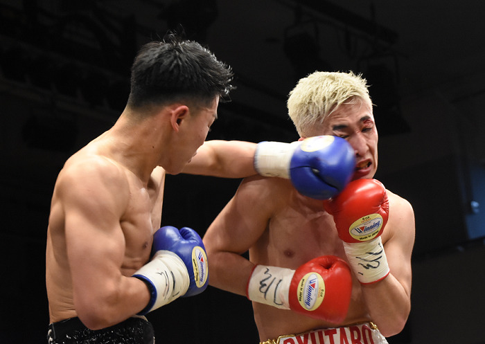 日本S・バンタム級11位の水谷とベテラン河村のサウスポー対決。河村がジャブから左ストレートにつなげ、水谷も譲らず右フックを決める立ち上がり。2回以降、河村が右フック、アッパー、左ストレートで攻めて有効打で上回るも、水谷が反撃に出るシーンもありスリリングな展開となる。3回に偶然のバッティングで両者ともに出血。4回は打撃戦で互いに左を決めてダメージを与えた。