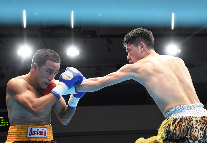 パワーでは鈴木が上回るものの、キティチャットのディフェスは固い。3回、両者の距離が詰まるとキティチャットが左フック、ボディへの右ストレートとパンチを散らしてうまく攻める。鈴木も左ボディを突き上げるが、4回もキティチャットがカウンターを好打し、タイ人がペースをつかみかけた。後手に回りかけた鈴木は5回、圧力をグッと強めて左フックを強打するとキティチャットが右目尻をカット。激しく血が流れてストップとなった。鈴木はデビューから3連続KO勝ち。キティチャットは21勝11KO2敗。