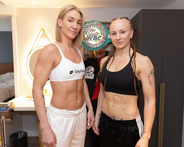メイヤー(17勝5KO1敗)は元WBO・S・ライト級チャンピオンのクリスティーナ・リナダトゥ(ギリシャ)と対戦するはずだったが、リナダトゥがBBBofC(英国ボクシング管理委員会)の要求する眼検査の条件を満たさなかったためアウト。メイヤーはルーシー・ワイルドハート(スウェーデン)と対戦する。メイヤーは134.5ポンド(61.01キロ)、ワイルドハートは134.4ポンド(60.96キロ)を計測しリミット135ポンドをクリアした。Photos by Queensberry Promotions & JP Yim