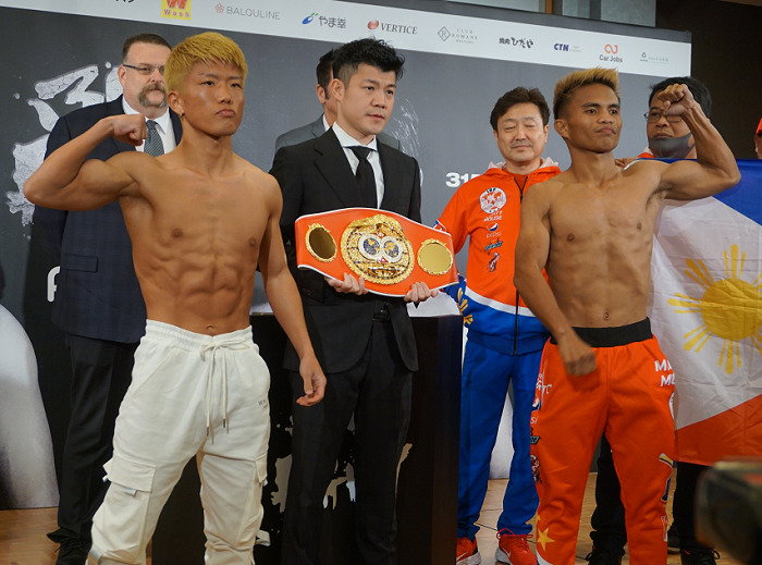 あす16日、代々木第二体育館で開催される「3150FIGHT vol.5」の計量が15日、東京ドームホテルで行われた。WBCミニマム級暫定王座決定戦に出場する同級3位の重岡優大(ワタナベ)と同7位ウィルフレド・メンデス(プエルトリコ)、IBF同級暫定王座決定戦を争う同級3位レネ・マーク・クアルト(フィリピン)と同4位の重岡銀次朗(ワタナベ)の4人全員がリミットの47.6キロで合格した。