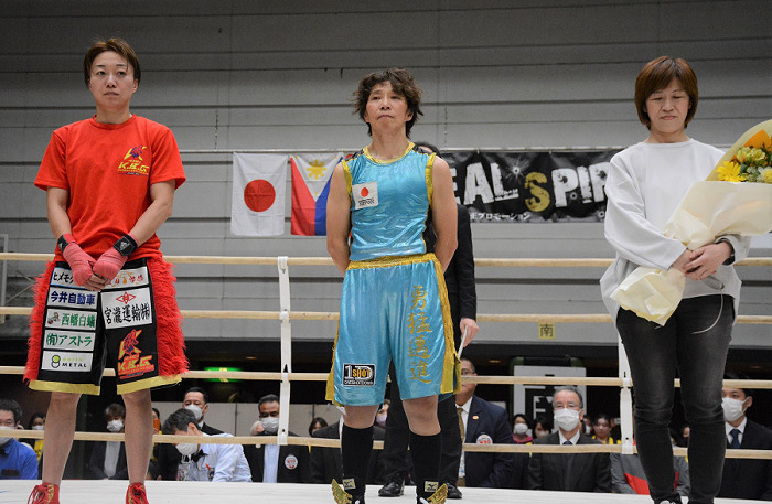 山中の防衛戦の前に53歳と現役最年長の元WBOアトム級王者、池山直(フュチュール)の引退式が行われた。池山と2度戦ったことがあるIBF女子アトム級王者、岩川美花(39=姫路木下)と2ラウンドの引退記念スパーリングを行った。