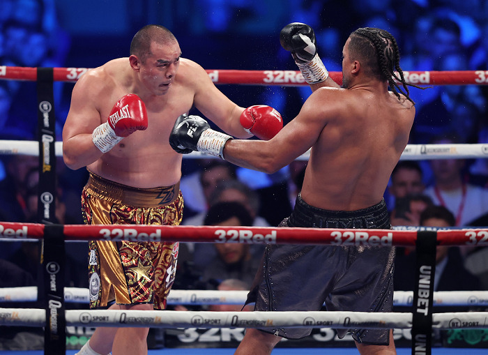 ロンドンのカッパー・ボックス・アリーナで15日(日本時間16日)行われたWBOヘビー級暫定王座タイトルマッチは、挑戦者ヂャン・ヂレイ(中国=張志磊、WBO13位)が暫定王者ジョー・ジョイス(英)に6回1分34秒TKO勝ち。10-1といわれたオッズを覆して王座に就いた。