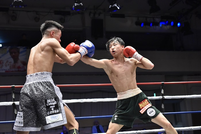 両者は16年に対戦して長谷部が4回TKO勝ち。再戦は初回、高田がジャブのタイミングで上回り、右ストレートを一発決めた。高田は2回も近距離で右ショートを決め、ジャブの連打で長谷部を下がらせた。長谷部は圧力を掛けてボディ打ちを狙っていくが、左目下が腫れてきた。