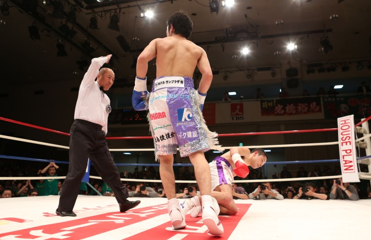 先手を取ったのは岩橋のカウンターパンチだ。2回、原が鋭く踏み込んで右ストレートを決めると、ここはチャンスと一気に前へ。すると岩橋の右ストレートが炸裂し、気が付けば原がダウンしていた。
